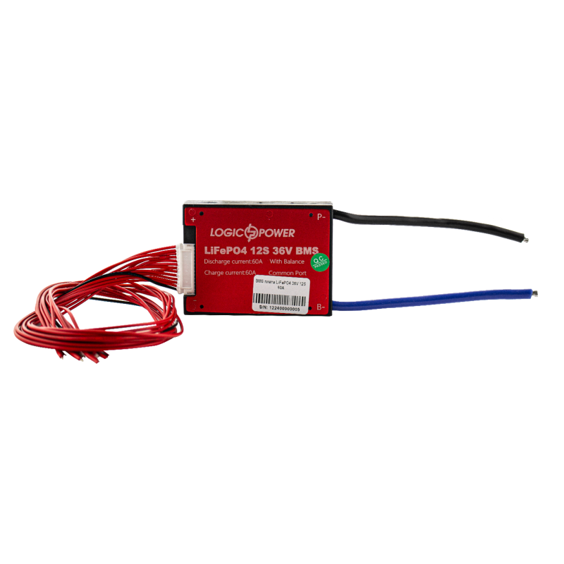 BMS плата LiFePO4 36V 12S Dis 60A Ch 30A