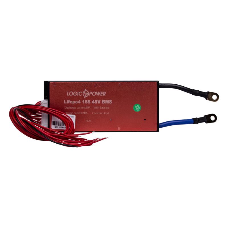 Система керування та балансування BMS LiFePO4 48V 16S 40A симетрія, забезпечує індивідуальний контроль напруги та опору кожного елемента акумулятора, розподіляє струми між складовими акумуляторної батареї під час зарядного процесу, контролює струм розряду, визначає втрату ємності від дисбалансу навантаження.