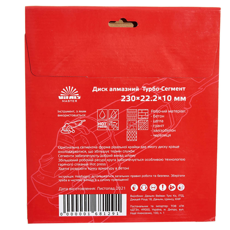 Опис алмазного диску Vitals Master Турбо-Сегмент 230×22.2×10 мм