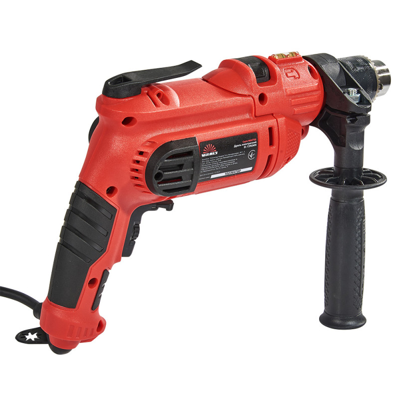 Діаметр свердлильного патрона від 1,5 до 13 мм забезпечує універсальність використання цього дриля для різних видів робіт. Довжина мережевого шнура 3 метри дозволяє працювати зручно та без обмежень, а режим реверсу дозволяє швидко змінювати напрямок обертання шпинделя, забезпечуючи ще більшу зручність під час роботи.