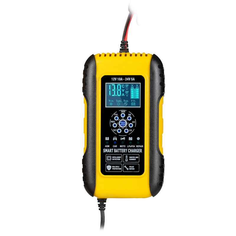 7-ступінчасті зарядні пристрої підходять для більшості типів акумуляторів, включаючи кальцієві, гелеві AGM, LiFePO4, вологі, свинцево-кислотні акумулятори, а також можуть допомогти відновити розряджені та сульфатовані акумулятори.
