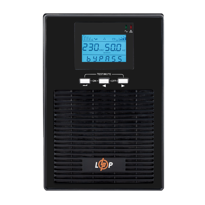 Корпус Smart-UPS LogicPower 1000 PRO (with battery) виготовлений з металевого сплаву. На передній панелі розташований LCD екран для контролю параметрів роботи пристрою.