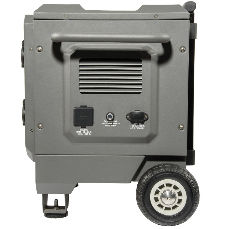 Зарядна станція має високу номінальну потужність змінного струму – 4500 Вт, що дозволяє заживлювати побутові пристрої першої необхідності. Вона також має функцію регулювання напруги, яка адаптує вихідну напругу до потреб підключених пристроїв.