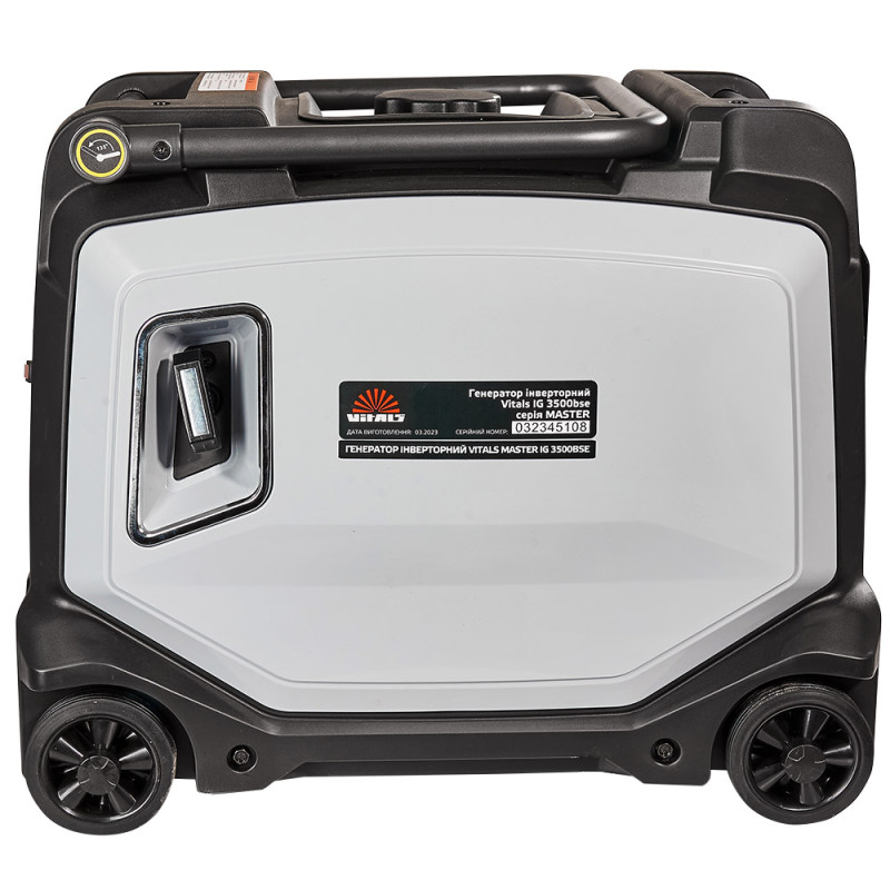 Бензиновий інверторний генератор Vitals Master IG 3500bse – компактний переносний електричний агрегат, призначений для резервного або аварійного живлення побутових споживачів. Виробляє правильний змінний однофазний струм напругою 230 В, частотою 50 Гц.