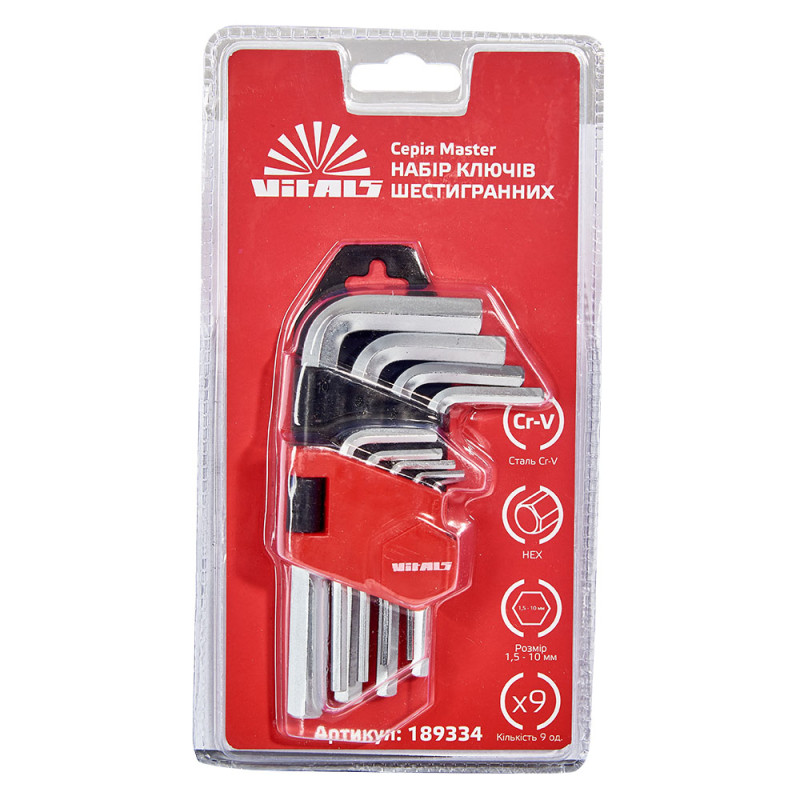 Опис набору ключів шестигранних 9 шт. 1,5–10 мм Vitals Master