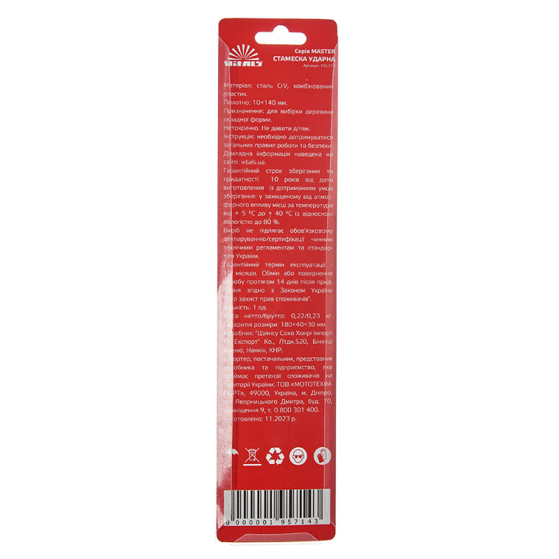 Опис стамески 10×140 мм Vitals Master