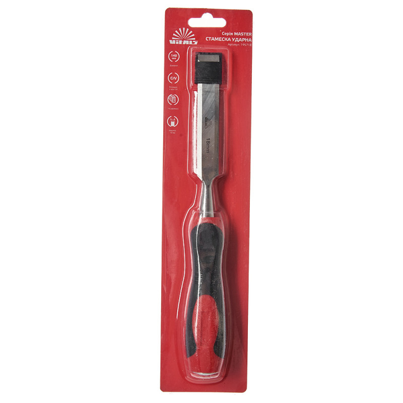 Стамеска 18×140 мм Vitals Master - це інструмент для різання та вирізування дерев'яних деталей різної форми та складності. Використовується для вибірки пазів, отворів, фігурного різання у деревині твердих та м'яких порід з використанням молотка чи киянки. Виготовлена з високоякісної сталі CrV, яка забезпечує довговічність та міцність стамески. Металевий наконечник на торці руків'я дозволяє завдавати ударів молотком або киянкою і докладати більше сили для інтенсивнішої вибірки матеріалу. Ширина стамески становить 18 мм, а довжина – 140 мм. Подовжене ергономічне руків'я з м'якими гумовими вставками для кращого хвату в руці та надійного контролю інструменту в процесі роботи.