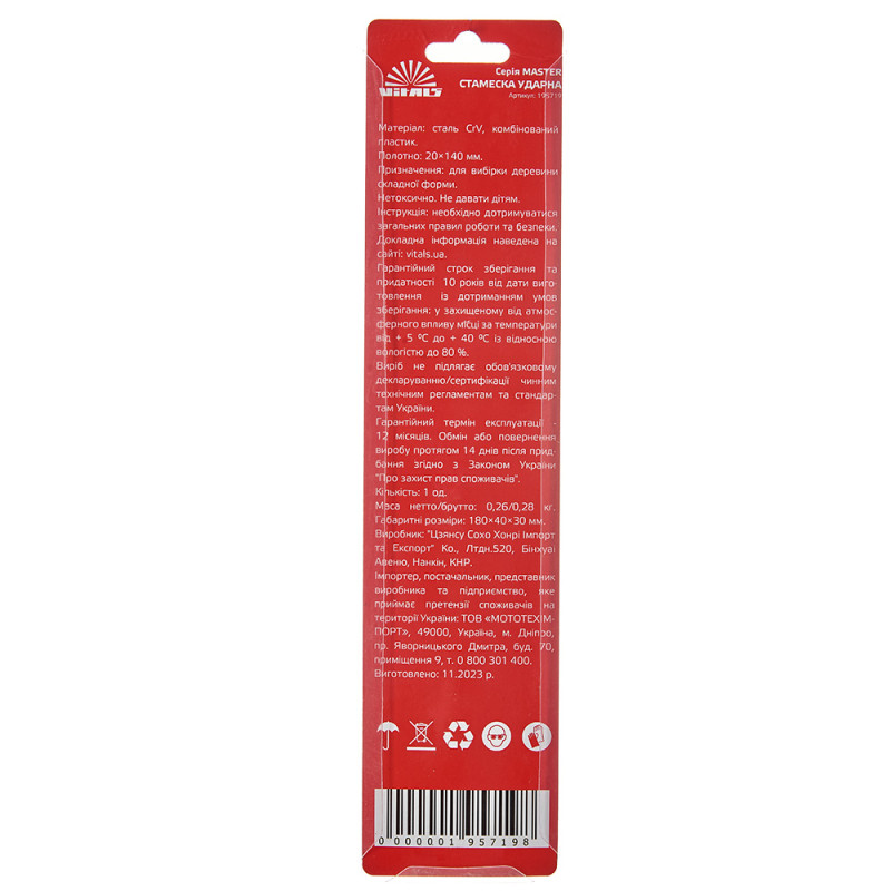 Опис стамески 20×140 мм Vitals Master