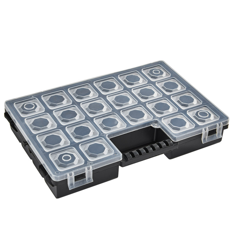 Завдяки прозорій пластиковій кришці ви завжди відрізнятимете вміст органайзерів без додаткового відкриття.
