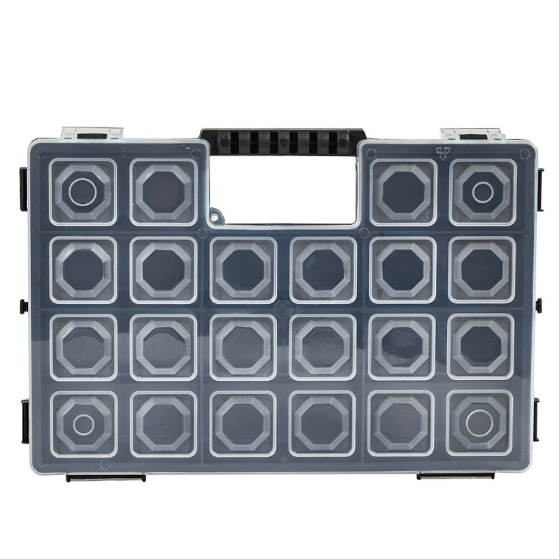 Ударостійкий корпус з АБС-пластику та міцні пластикові замки надійно захистять вміст від пошкоджень та раптового розсипання. Ергономічне руків'я дозволить легко та зручно транспортувати органайзер на будь-яку локацію.