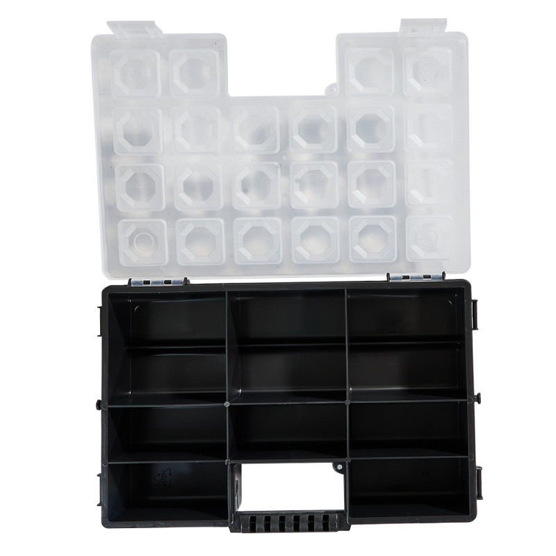 Він стане незамінним для зберігання наборів інструментів та дрібних деталей домашнього майстра, творчої рукодільниці, затятого рибалки та мисливця, адже грамотний поділ на секції дозволяє системно організувати зберігання дрібних деталей.