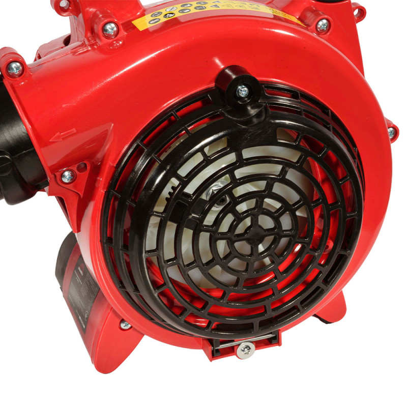 Мощный вентилятор обеспечивает интенсивный воздушный поток, позволяя быстро и эффективно очищать поверхности. Высокая скорость воздуха 68 м/с и значительный объём прокачки 618 м³/ч гарантируют результативную работу даже с влажной листвой или мелким мусором.