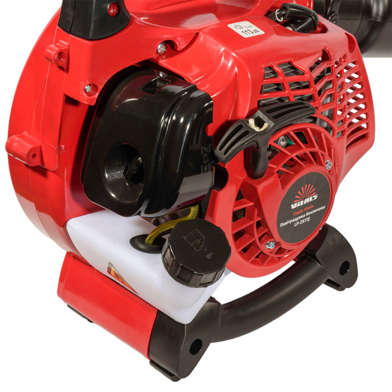 Воздуходувка бензиновая Vitals LP 2572j оснащена надёжным двухтактным двигателем с воздушным охлаждением, объёмом цилиндра 25,4 см³ и мощностью 1,0 л.с. (0,75 кВт). Двигатель обеспечивает стабильную работу, быстрый набор оборотов, экономичный расход топлива и минимальные выбросы отработанных газов.
