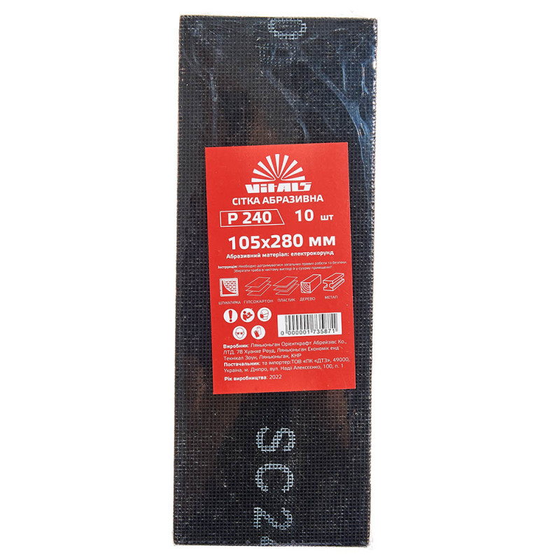 Опис cітки абразивної Vitals 105х280 мм. 240