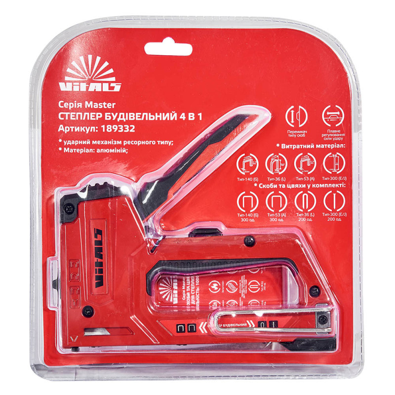 Опис степлера будівельного ресорного 4 в 1 Vitals Master