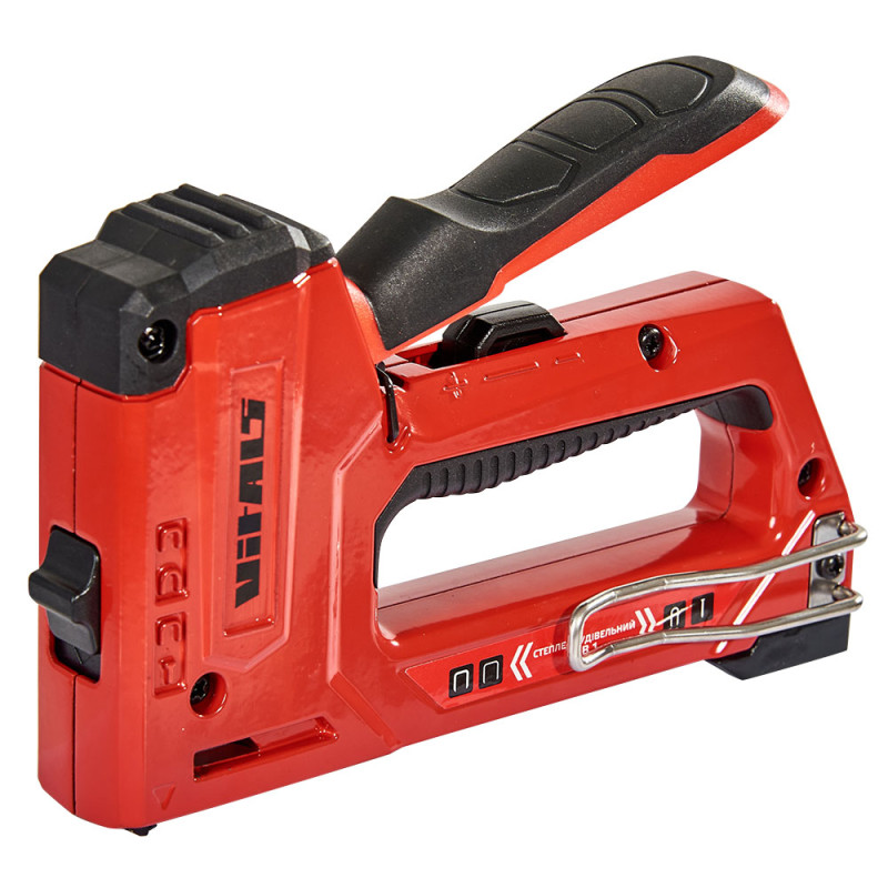 Степлер будівельний ресорний 4 в 1 Vitals Master — незамінний інструмент для тих, хто займається будівельними, ремонтними роботами, виробництвом меблів.
