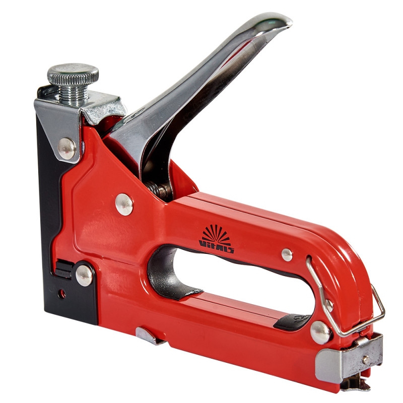 Степлер будівельний T53 4–14 мм Vitals — незамінний інструмент для тих, хто займається будівництвом, ремонтними роботами, виробництвом меблів.