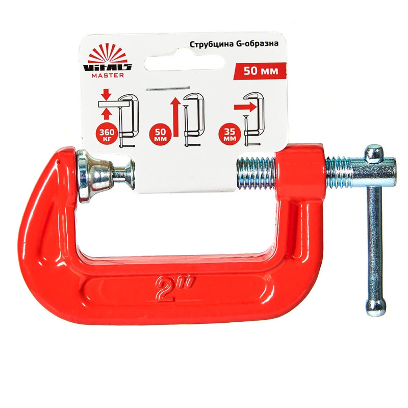 Струбцина G-подібна Vitals Master 50 мм призначена для затискання та фіксації заготівель та деталей при склеюванні та інших слюсарних роботах.