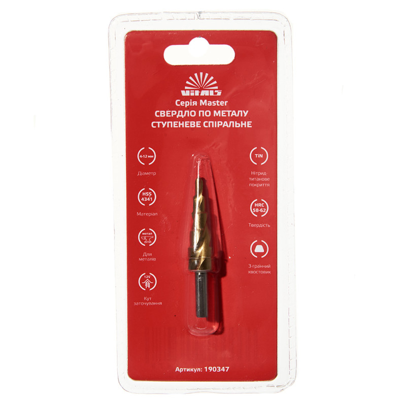 Свердло ступеневе спіральне 4–12 мм Vitals Master