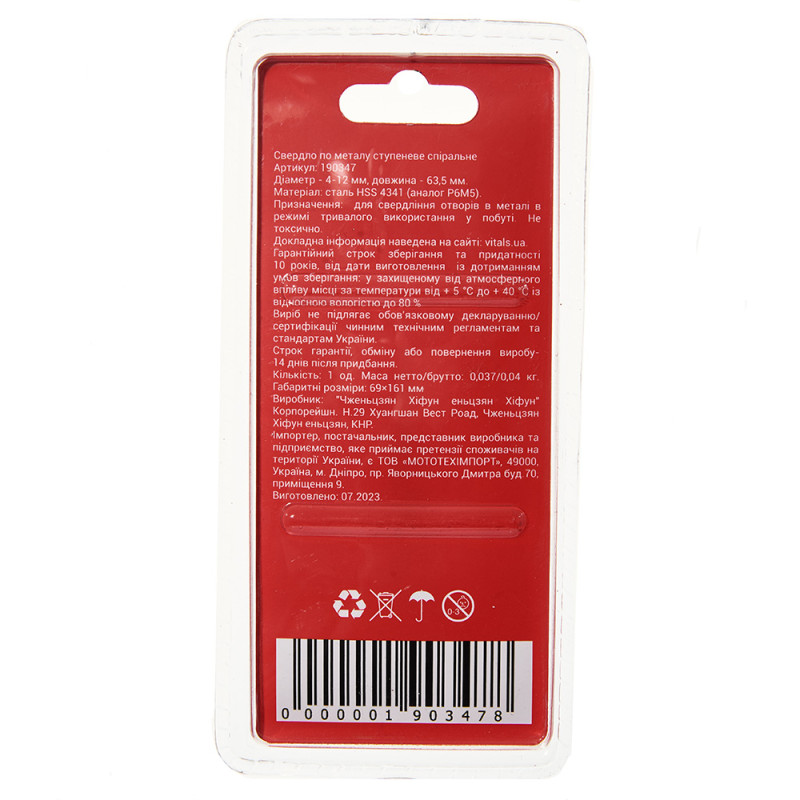 Опис свердла ступеневого спірального 4-12 мм Vitals Master