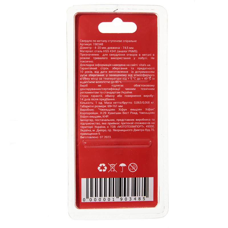 Опис свердла ступеневого спірального 4-20 мм Vitals Master