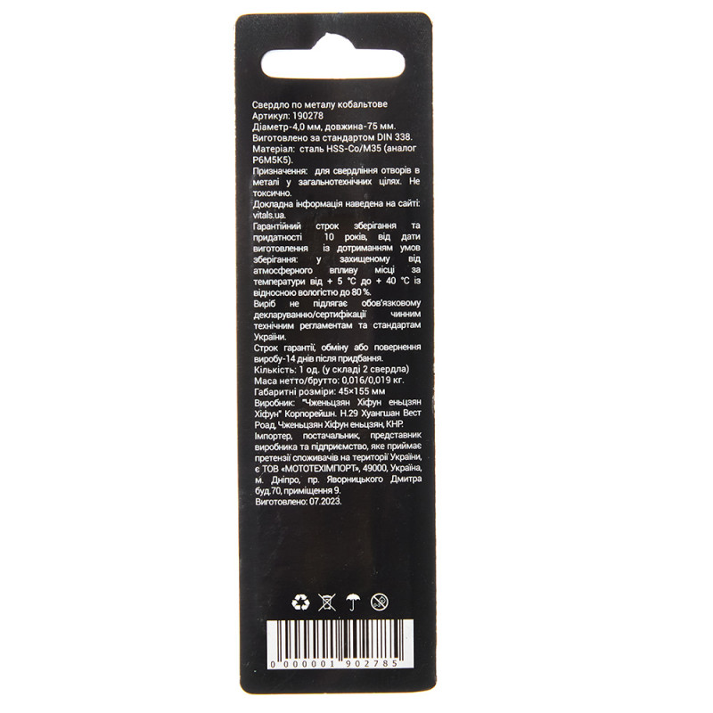 Опис свердла по металу HSS-Co/M35 4.0 (2 од.) Vitals Professional