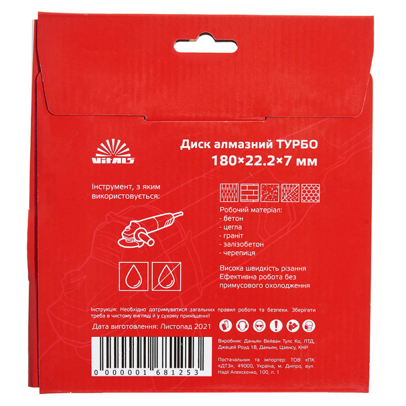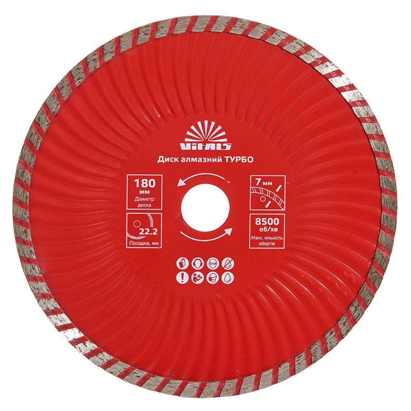 Опис алмазного диску Vitals ТУРБО180х22.2х7 мм