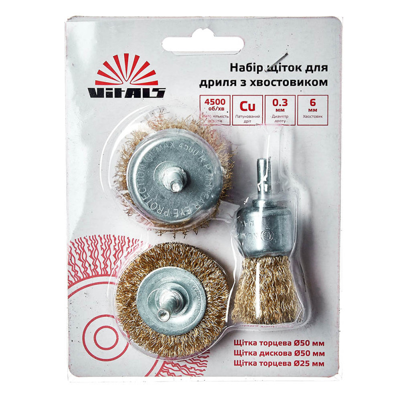 Опис набору щіток для дриля з хвостовиком Vitals, 3 шт.