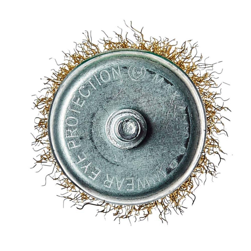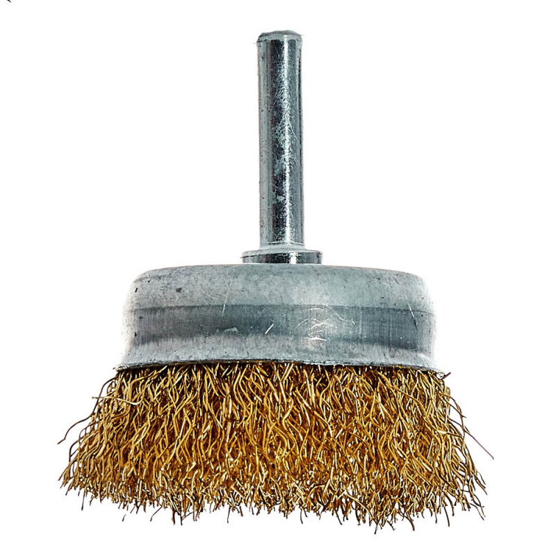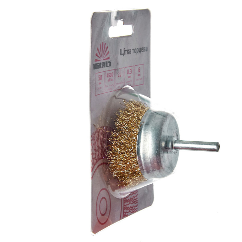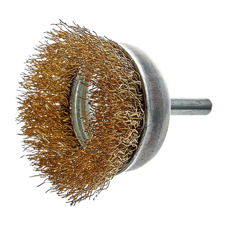 Щітка-чашка з хвостовиком Vitals гофрована латунована 50 мм, 0,3 мм призначена для обробки дерева, зняття фарби, шліфування металу, зняття іржі.