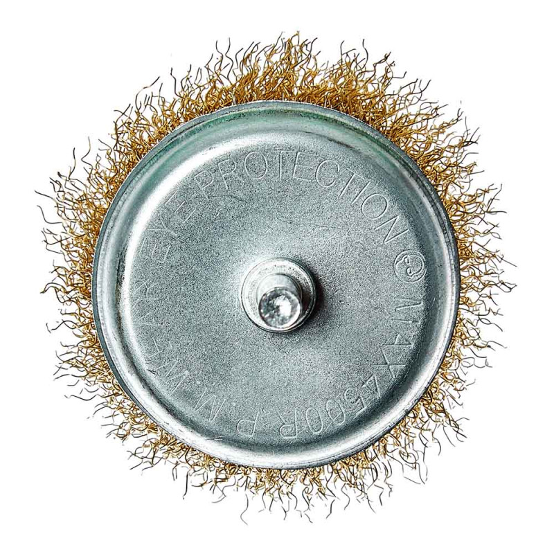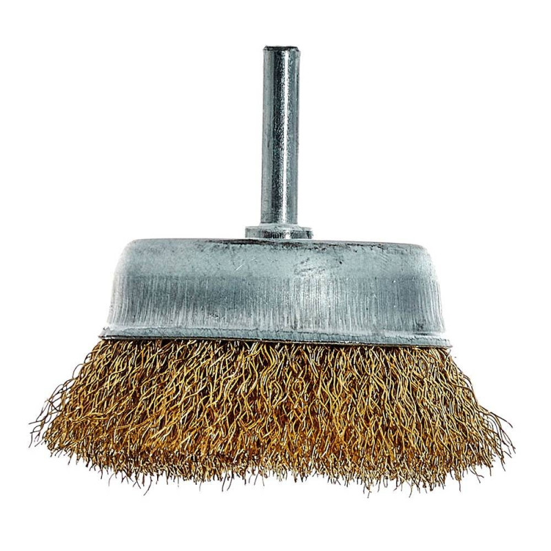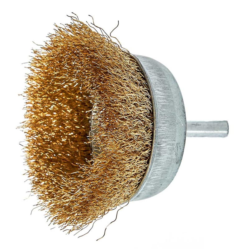 Щітка-чашка з хвостовиком Vitals гофрована латунована 75 мм, 0,3 мм призначена для обробки дерева, зняття фарби, шліфування металу, зняття іржі.