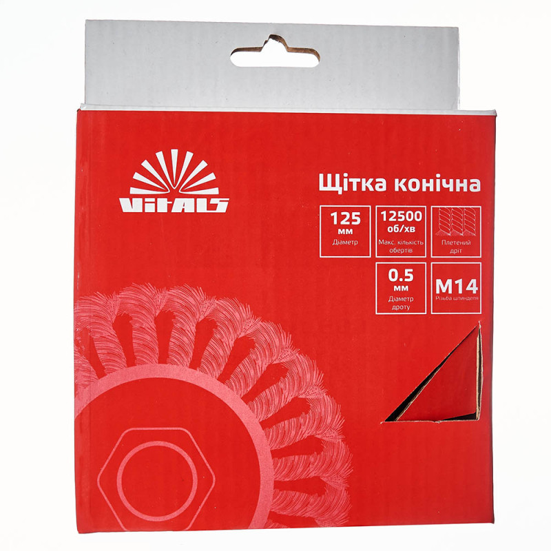 Щітка конічна Vitals плетена сталь 125 мм М14, 0,5 мм