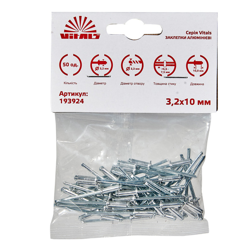 Опис заклепок алюмінієвих 3.2x10 мм (50 од.) Vitals