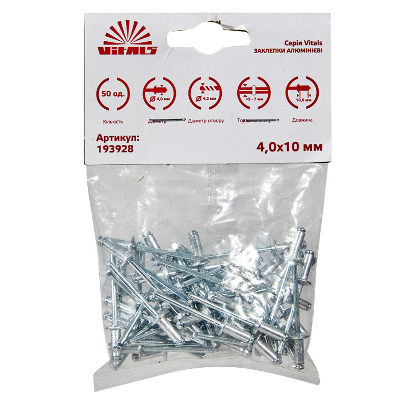 Опис заклепок алюмінієвих 4.0x10 мм (50 од.) Vitals