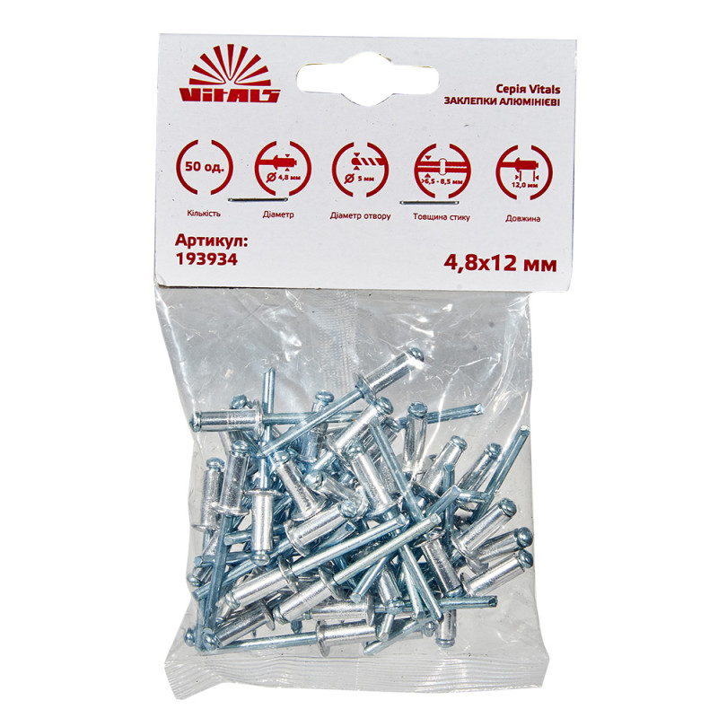 Опис заклепок алюмінієвих 4.8x12 мм (50 од.) Vitals