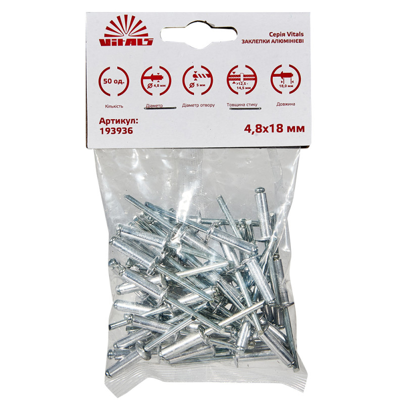 Опис заклепок алюмінієвих 4.8x18 мм (50 од.) Vitals